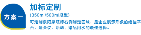 兩種定制方案靈活可選,為您量身定做企業(yè)專屬的長白山天然礦泉水,展現(xiàn)企業(yè)個(gè)性,彰顯企業(yè)文化,提升企業(yè)形象,助力商務(wù)成功!